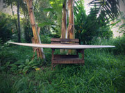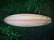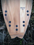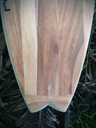 A big fish for Mats who wanted something as close as possible to his beloved Soul Fish that stays in Sweden. Light belly to single to V double concave bottom with a five fins setup. Paulownia wood on both sides. Beauty in simplicity.